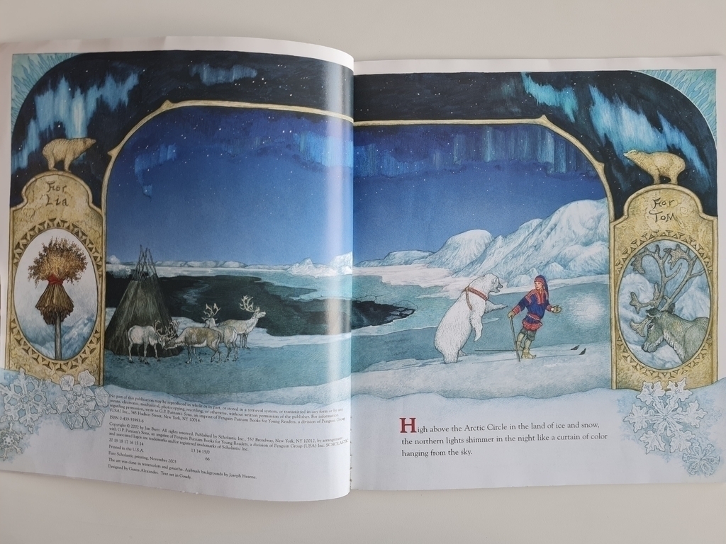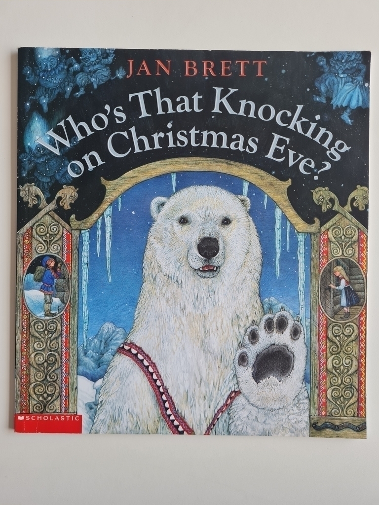 Every year, trolls break down Kyri’s door and devour her Christmas party. But this year, the trolls are in for a surprise: a boy and his pet ice bear on their way to Oslo have come in from the cold. And once the ice bear is done with the trolls, you can bet they won’t come knocking next Christmas Eve! Once again, Jan Brett creates an original Christmas story full of warmth and magic. With beautiful borders, intricate illustrations, and a stunning display of the Northern Lights, Who’s That Knoking on Christmas Eve? will rightly take its place among Jan’s Christmas favorites with the whole family.
