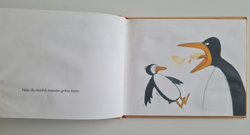 Mamãe Zangada é uma obra terna e graciosa, porém impermeável à banalidade com que frequentemente se apresenta aos pequenos o tema tratado no livro: a afetividade. No início da história inicia-se por um conflituoso grito da mamãe que descompõe o pequeno pinguim, fazendo com que todas as partes doe seu corpo dele se espalhem pelos quatro cantos do mundo. O desmembramento, evidente tanto no texto quanto nas imagens de grande potência expressiva, é uma metáfora para representar o sentimento de angústia e insegurança por de não se sentir-se querido nem por vezes, por não entender, muitas vezes, a reação do outro. Um extraordinário álbum da escritora e ilustradora alemã Jutta Bauer, que aborda com delicadeza, beleza e sensibilidade a complexidade das relações humanas. Resenha Especializada – A Taba