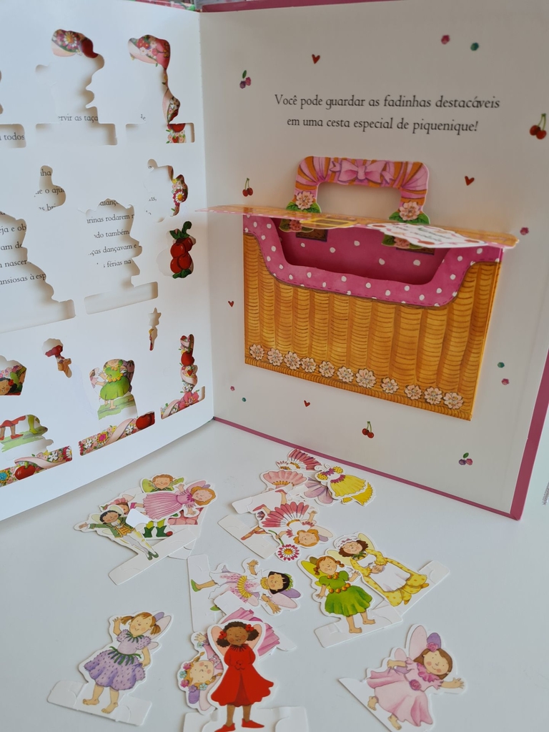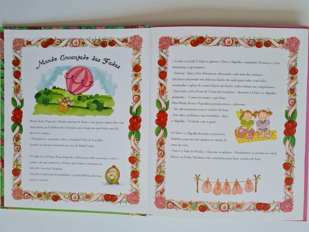 Pétala, Rosa, Papoula e Bolota estão passando férias divertidas na Casa das Cerejeiras – há muito o que fazer por lá! Todos escorregam pelo arco-íris com as fadas das jóias, plantam sementes mágicas no jardim e ajudam as fadas Modistas a fazer belos vestidos de festa. E, o melhor de tudo, elas podem dançar, cantar e beber o suco encantado na festa da cerejeira.