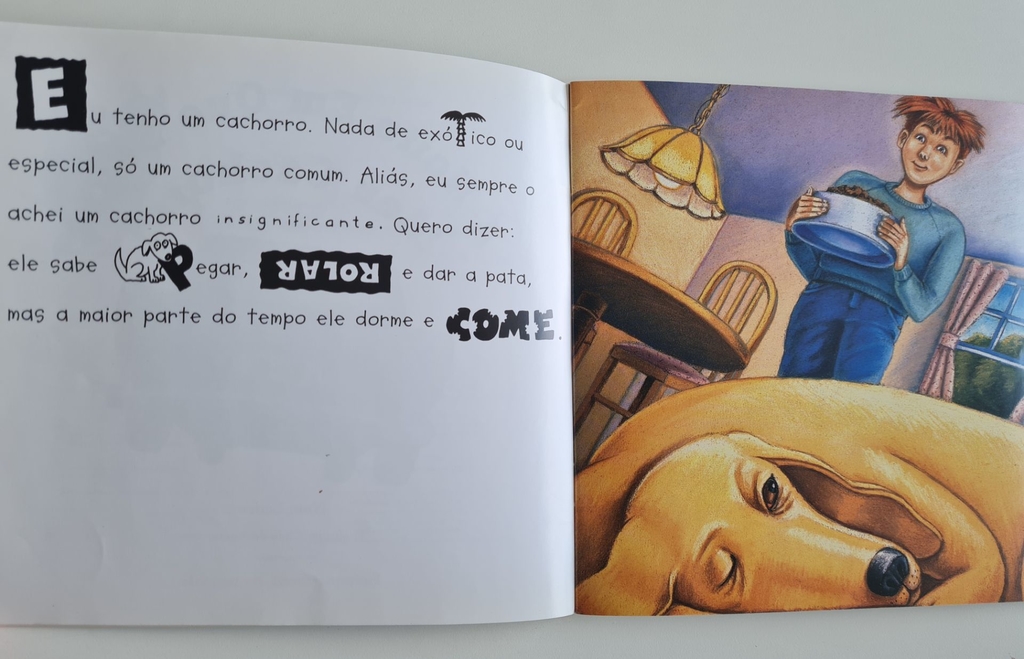 Algum dia você já imaginou aonde os cachorros vão à noite e o que eles fazem? Bem, o menino desta história tem motivos para desconfiar que algo estranho vem acontecendo e está pronto para descobrir o que é. Junte-se a ele nesta aventura hilariante. Ao fundir palavras e símbolos, a autora desenvolve um código que complementa a compreensão do texto, estimula a curiosidade do leitor e desperta o prazer da leitura.