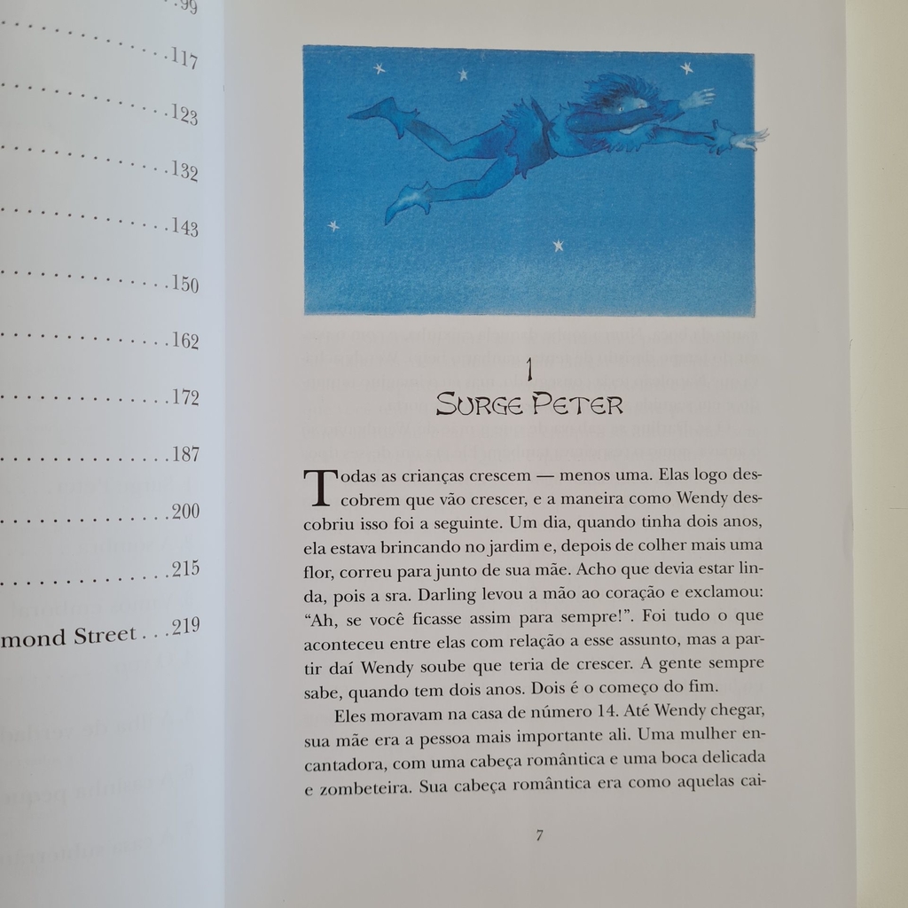 Apresentado aqui em versão integral, Peter Pan e Wendy é um dos grandes clássicos da infância. A história circula no Brasil sobretudo como desenho animado ou em edições simplificadas. O encanto não se perde, é verdade, mas é preciso conhecer o texto de J. M. Barrie para testemunhar a alta qualidade literária da obra.A figura de Peter Pan é o melhor exemplo da densidade psicológica surpreendente que o autor infunde a seus personagens. Peter, como se sabe, é o menino que se recusa a crescer. Tudo o que deseja na vida é ser exatamente o que já é: criança. Outra característica sua é que ele esquece as coisas. Está sempre se metendo em mil aventuras e no minuto seguinte já não se lembra delas. É tão desmemoriado que chega a esquecer quem é Wendy. De Sininho, então, nem se fala.A falta de memória ajuda Peter Pan a não crescer. Se ele não se lembra do que já viveu, fica com a impressão de que mesmo as coisas repetidas estão acontecendo pela primeira vez. É por isso que às vezes as alegrias e as tristezas dele são tão fortes. É o que acontece, por exemplo, numa de suas lutas contra o Capitão Gancho. A certa altura ele vê que pode vencer facilmente, mas, percebendo que o inimigo está num plano mais baixo, estende-lhe a mão e o ajuda a subir. Qual a reação de Gancho? Dá uma mordida em Peter Pan. Peter se espanta, se horroriza, fica sem ação. Não pela dor, mas pela deslealdade, pela injustiça. “Toda criança reage dessa forma na primeira vez em que recebe um tratamento injusto”, escreve o narrador. “Tudo o que ela se acha no direito de encontrar quando se aproxima de alguém é justiça. Poderá amar de novo uma pessoa que foi injusta com ela, porém nunca mais será a mesma criança. Ninguém se recupera da primeira injustiça – ninguém exceto Peter. Ele muitas vezes a encontrou, mas sempre a esqueceu. Acho que isso era o que verdadeiramente o diferenciava do resto do mundo”. Peter Pan pode ser espertíssimo ao combater piratas, mas tem um coração ingênuo. Tudo para ele tem a intensidade de uma primeira vez. Ele é mesmo uma criança, e, sendo criança, está sempre descobrindo que o mundo é uma novidade.