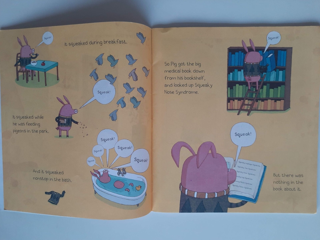 When Pig hears a strange squeaking coming from his nose, he thinks something is very wrong. But eventually he realises that the noise is just a little bug. The two decide to be friends, but their difference in size soon becomes a BIG problem — they can’t seem to find anything that they can both enjoy. But when it comes to friendship, does size really matter?