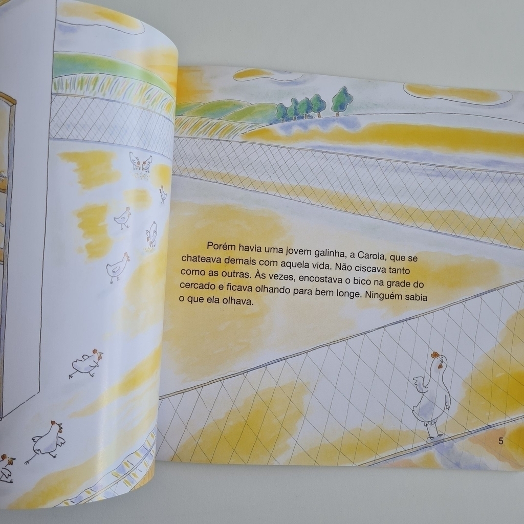 Em O pintinho que nasceu quadrado, de Regina Chamlian e Helena Alexandrino, texto e ilustrações narram uma história permeada de sensibilidade e muita reflexão. O seu primeiro ovo causou susto, indignação e muita confusão.Carola botara um ovo quadrado! Impedida de ficar no galinheiro, parte, com firmeza e coragem, em busca de um lugar onde seu filho possa ser criado com dignidade e respeito.