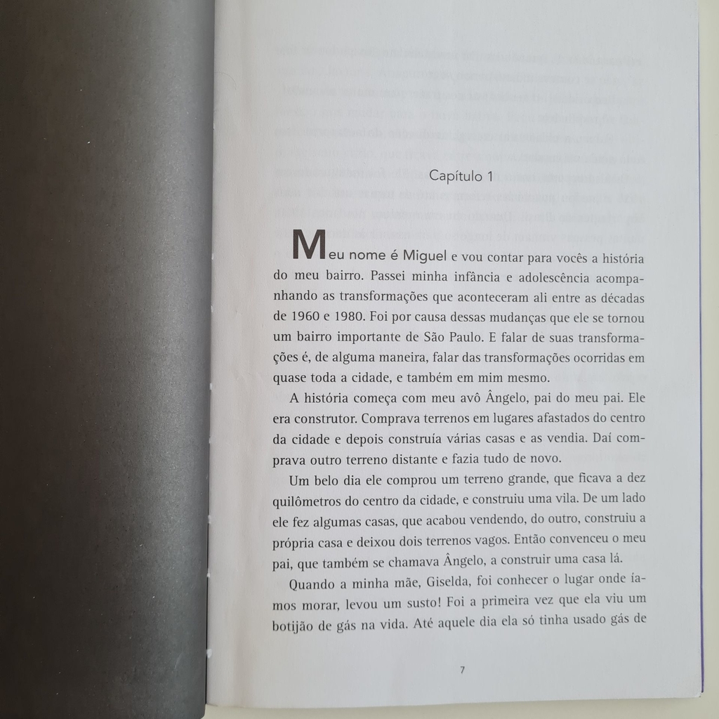 Narrado em primeira pessoa, o livro conta a história do menino Miguel ao mesmo tempo em que descreve as transformações e o progresso de um famoso bairro paulistano (Moema), entre as décadas de 1960 e 1980. Miguel é um garoto que passa a infância e a adolescência em um bairro longe do centro da cidade de São Paulo. À medida que cresce, o garoto acompanha as mudanças e o progresso do lugar, onde seu avô constrói uma vila e várias casas as quais vende depois. Neste bairro, o avô de Miguel constrói a própria casa e convence o filho, pai do Miguel, a fazer a sua. A infância do garoto é repleta de aventuras pelas ruas e na escola estadual, onde passa todo o ensino fundamental e se destaca como um aluno aplicado. Rodeado por toda a família, num bairro cheio de árvores, onde se podia jogar futebol e andar de bicicleta à vontade, Miguel passa uma infância e adolescência das quais se recordará com saudade no decorrer de sua vida, mesmo depois de se mudar para os Estados Unidos e se tornar um renomado neurocientista.