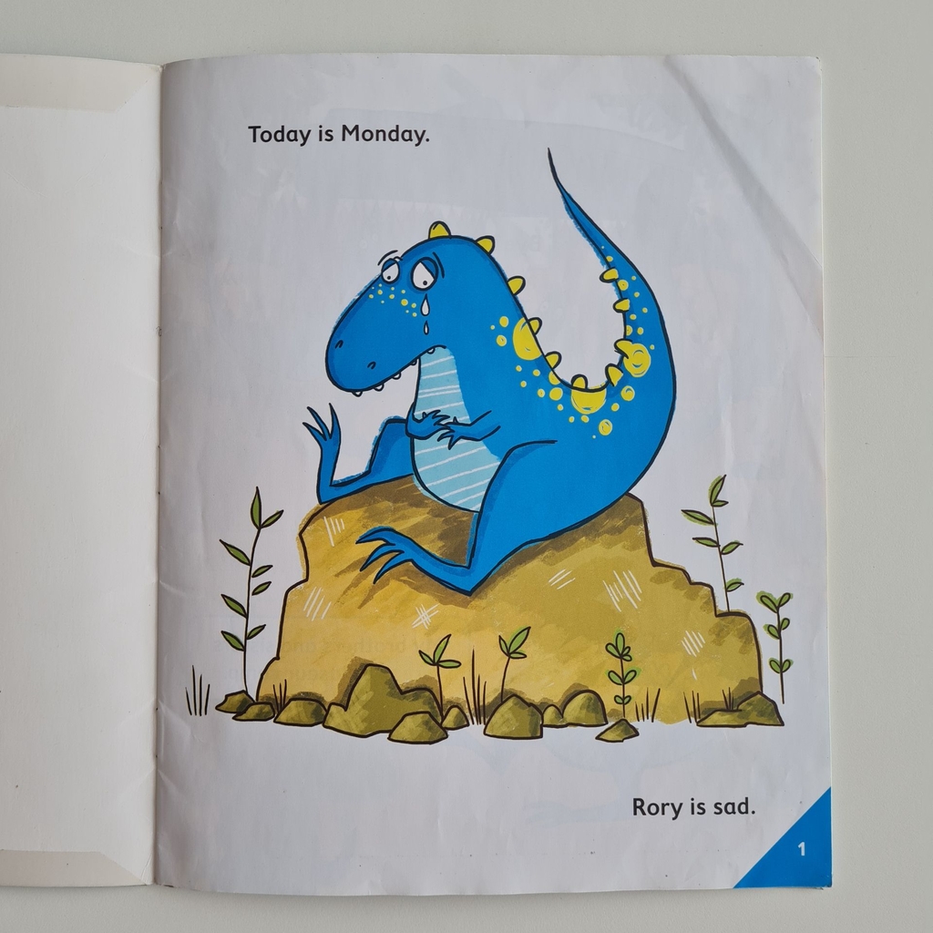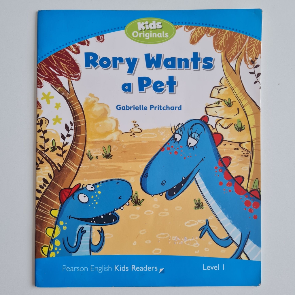 Rory é um dinossauro. Ele quer um animal de estimação. Ele quer um gato, um pássaro ou um elefante. O que é a grande bola da cozinha? Ele se move! É um animal de estimação?