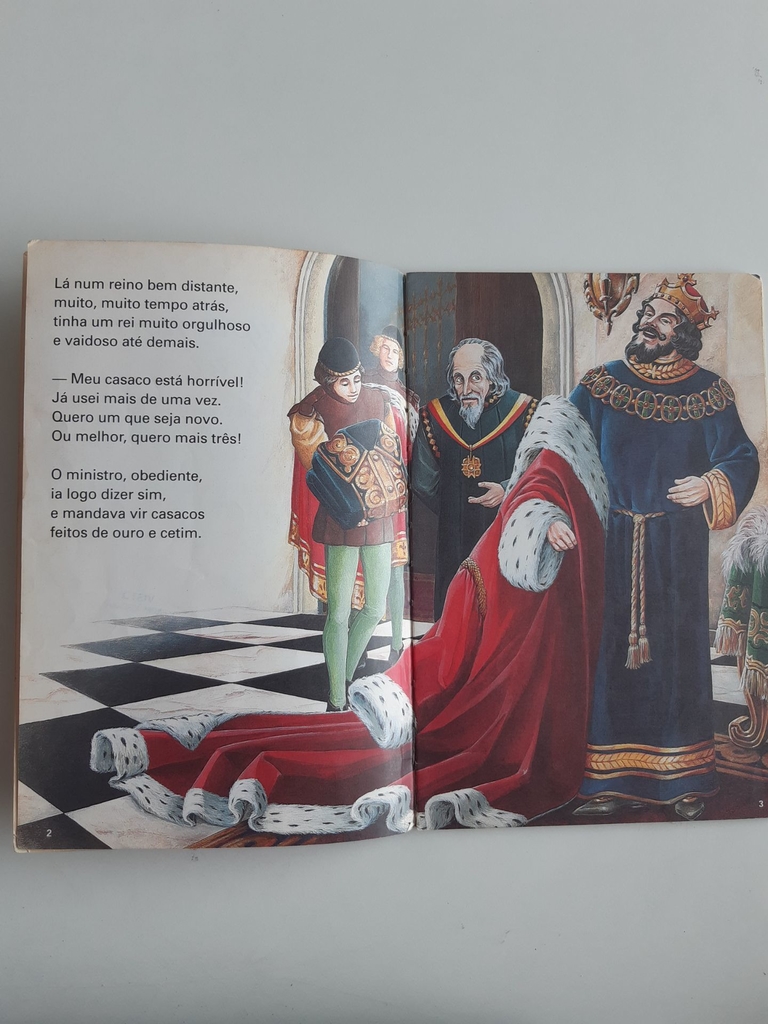 Lá, num reino bem distante, havia um rei orgulhoso, que se achava bem lindo e era muito vaidoso. Ele nem desconfiou, e disso nem tinha pistat, de que aqueles tecelões eram também vigaristas…