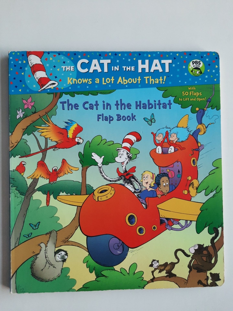 Hop aboard the Thingamajigger and join the Cat and Co. as they travel the world and visit six different habitatsa tropical rainforest, the African savanna, a desert, the Arctic, a rocky shore, and Sally’s backyardin this sturdy, oversize board book with 50 flaps about places visited in the PBS Kids show The Cat in the Hat Knows a Lot About That! See that jaguar hidden in the rain forest? Lift the flap to find out how its spotted fur helps the big cat disappear in the dappled light. See that patch of sand on the beach? Lift the flap to find a soft-shelled clam buried in the sand! Perfect for little hands and curious minds, this is a great way to introduce natural history featuring a character kids know and love!