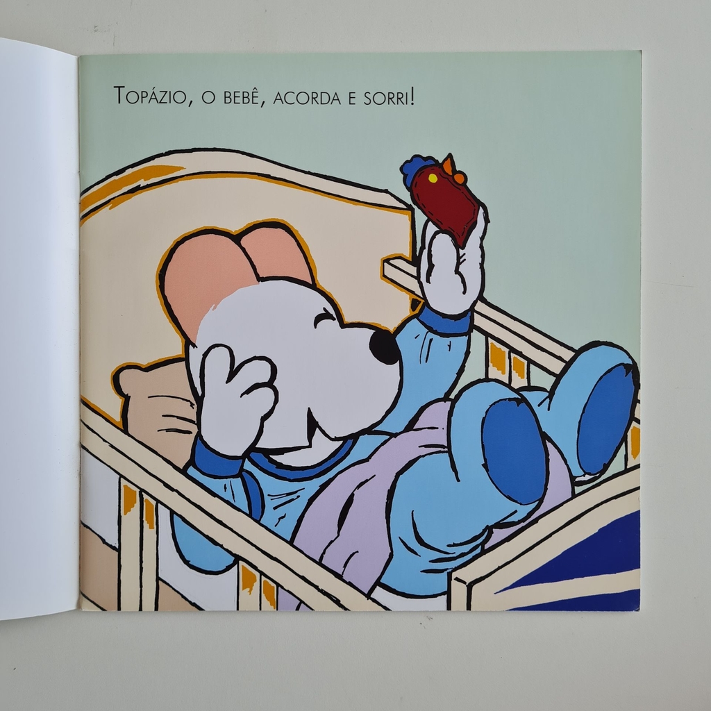 Neste livro, os autores criam uma história em que o leitor conhece Topázio, o bebê de Rubi e Esmeralda, e sua rotina acordar, tomar banho, mamar, brincar, receber carinho, ser fotografado, passear, dormir. Na hora de o bebê dormir, mamãe canta: Boi, boi, boi boi da cara preta Agora, Topázio, papai e mamãe vão descansar. Cores vivas, ilustrações ricas em detalhes, traços fortes, frases objetivas, diálogos curtos, personagens encantadores, relações afetivas, assunto pertinente ao universo infantil certamente conquistarão o pequeno leitor.