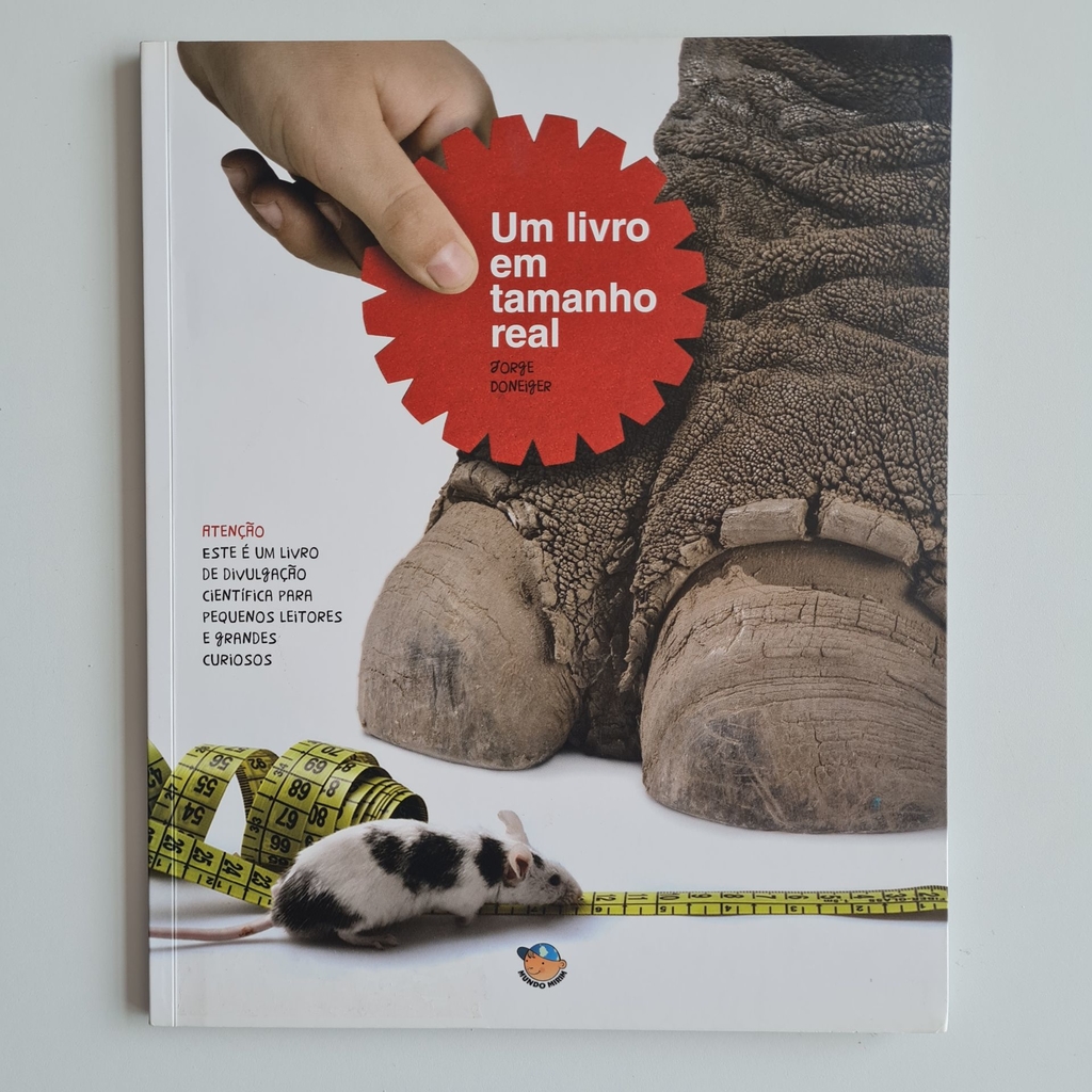 Tudo o que você vai ver nestas páginas está do tamanho que tem de verdade. Numa das páginas, por exemplo, o pé de um elefante surge ao lado de um ratinho, e as imagens dos dois estão em tamanho real. Um livro que ensina, brincando, os tamanhos e as proporções das coisas.