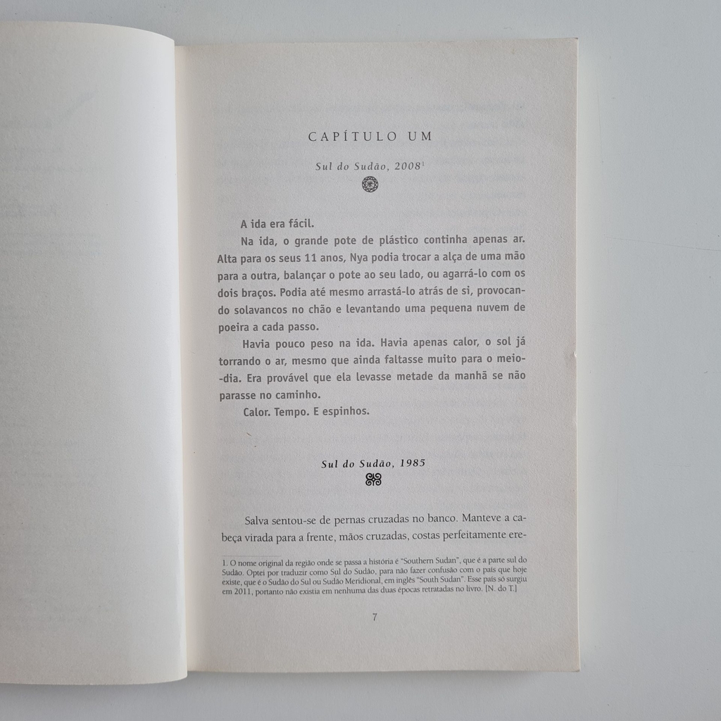 O livro narra duas histórias, em diferentes épocas, de dois jovens nascidos no Sudão: Salva Dut, um menino que passou sua infância fugindo da guerra, na década de 1980, e que consegue se refugiar nos Estados Unidos; e Nya, uma menina que em 2008 ainda precisa caminhar horas e horas todos os dias até a lagoa para buscar água para sua família. Com uma mensagem de esperança: que até mesmo num país cheio de problemas, sobreviventes determinados podem encontrar o futuro pelo qual anseiam.