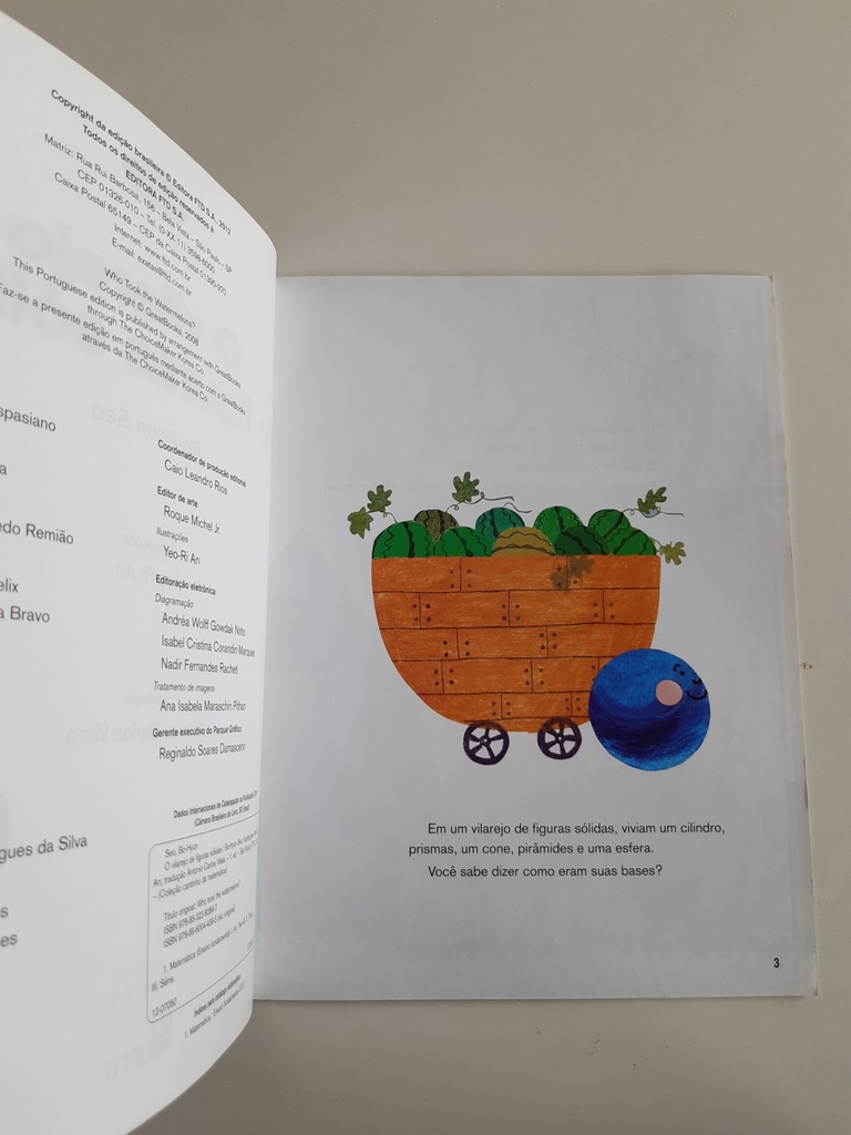 Há muito tempo, em uma floresta tranquila, havia um vilarejo de figuras sólidas. Mas a calmaria desse lugar foi um dia interrompida… Certa manhã, a esfera ficou chocada quando descobriu que alguém tinha roubado algumas de suas melancias durante a noite: Ah, mas espere até eu pegar esse ladrão! A esfera estava mesmo decidida a encontrar o ladrão de melancias, que deixou algumas pegadas no chão de sua plantação: dois triângulos juntos e uma linha comprida são as pistas para chegar ao infrator! Será que esse mistério vai ser desvendado?