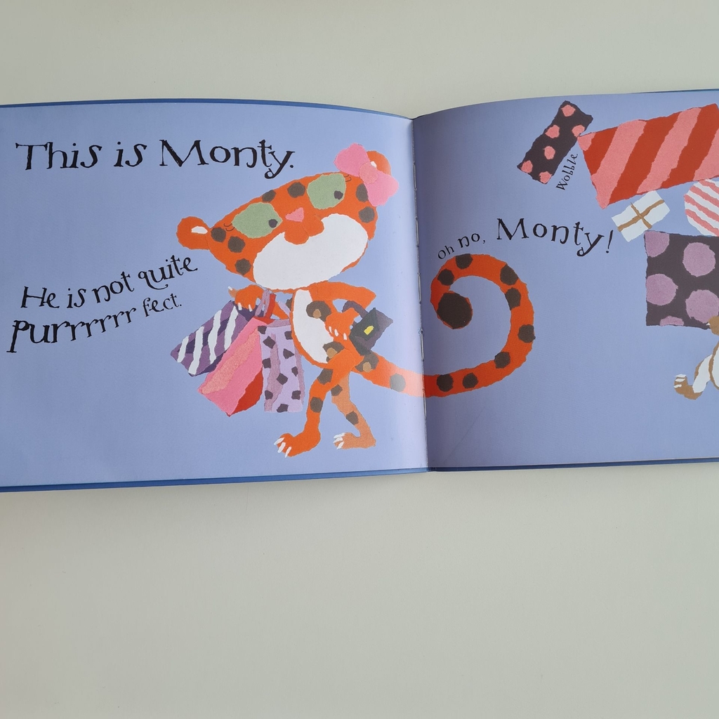 This picture book for children uses original torn-paper illustrations to tell the fun-filled story of the glamorous Lola the Leopard, who is incredibly vain, and her friend Monty the Meerkat, whose clumsy antics don’t add up to the purrrrrfection Lola is looking for. The cover features soft flocking on Lola’s fur, making it tactile object which will delight children. Curved corners mean that baby and toddlers can play safe when reading this book. Also, repetitive text throughout the book encourages the development of vocabulary.